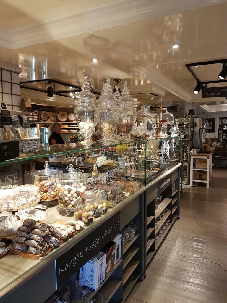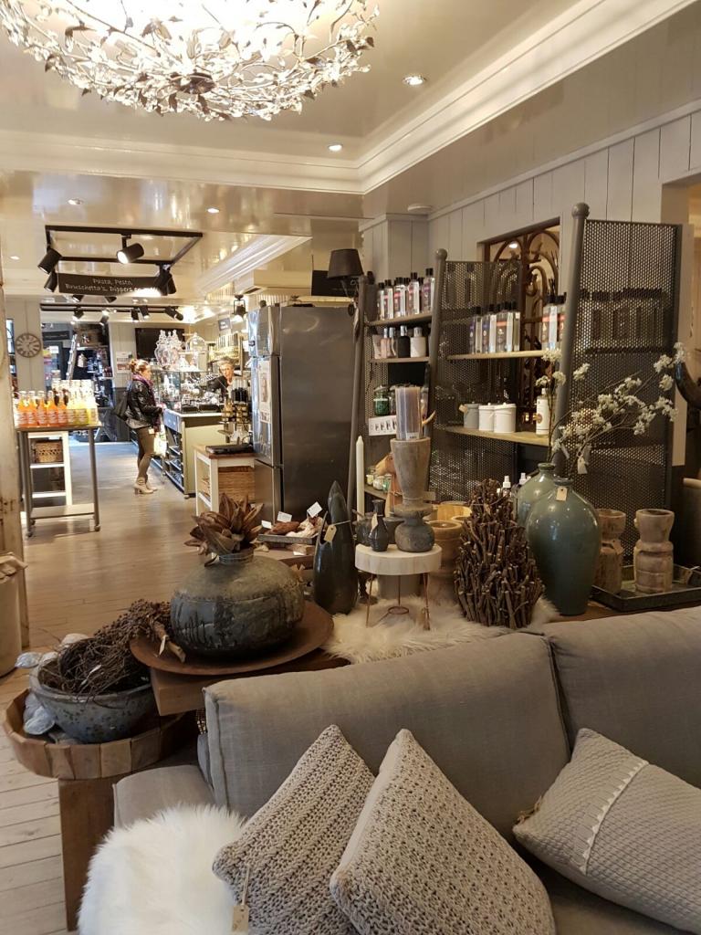 ‘Wij hebben in de winkel een tweedeling gemaakt. Je komt binnen in de speciaalzaak met lekkernijen en loopt langs de koffie, thee, bonbons, bier, wijnen, olie en azijn, kazen en worsten naar het deel met woonaccessoires en meubelen. Samen vormt het een logische geheel dat in elkaar overloopt’